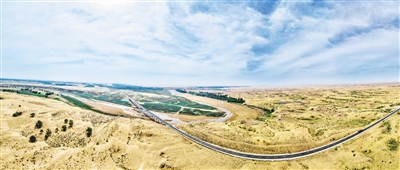如今,在杭锦旗,一条条穿沙公路成为生态治理、兴业富民的“绿色大动脉”。全旗已构建起“两横四纵”、总长近930公里的穿沙公路网,一些道路更是成为内蒙古连接陕西省等省份的重要公路干线。其中,省道215线独贵塔拉至锡尼段公路有效促进了呼包银经济圈及内蒙古沿黄河、沿交通干线经济发展。