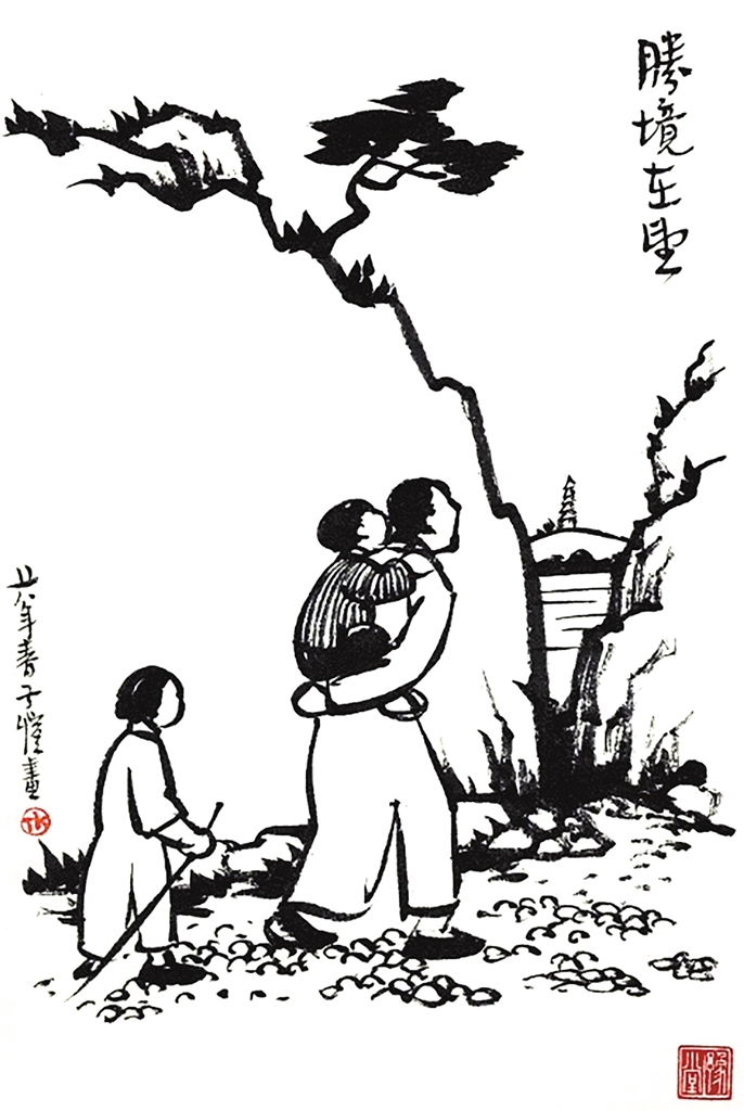 经过抗日战争那特殊岁月的洗礼,丰子恺的漫画创作与散文创作都发生了变化。就《大树画册》中的作品而言,颇有战场速写的特征,即激情饱满,洞察敏锐,有感即发,一挥而就。较之于他之前及之后的漫画,这些作品更显得下笔果断有力,着墨浓重淋漓。由此,我们可以想象到他当时的经历以及“不能自已”的创作冲动。
