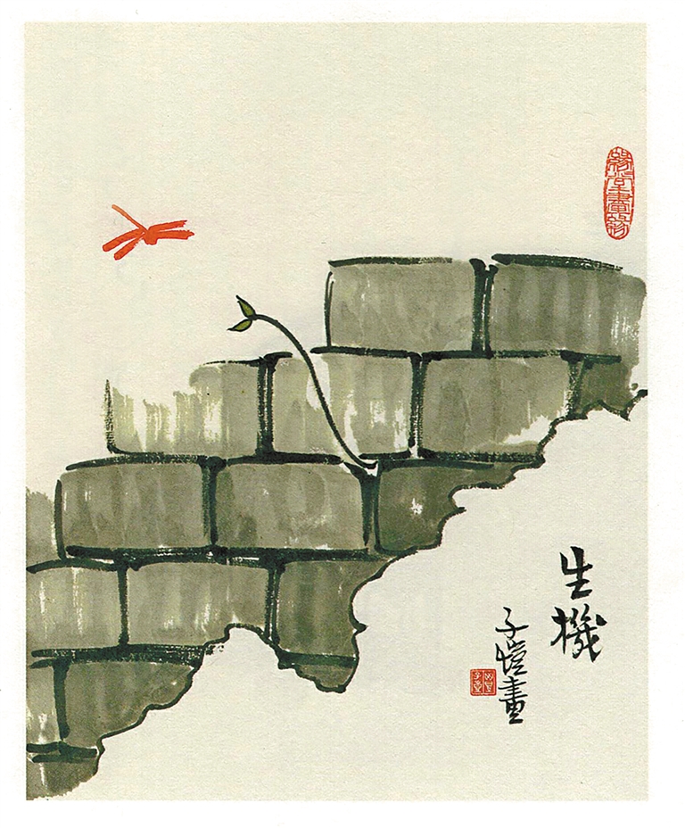 《生机》这幅漫画创作于1938年,当时,丰子恺携一家老小迁往长沙等地,但他以一个“醒着的战士”的自觉面对抗战,以画写志,表达生机不息,希望可期。他在散文《生机》中讲:“人间的事,只要生机不灭,即使重遭天灾人祸,暂被阻抑,终有抬头的日子。个人的事如此,家庭的事如此,国家民族的事也如此。”