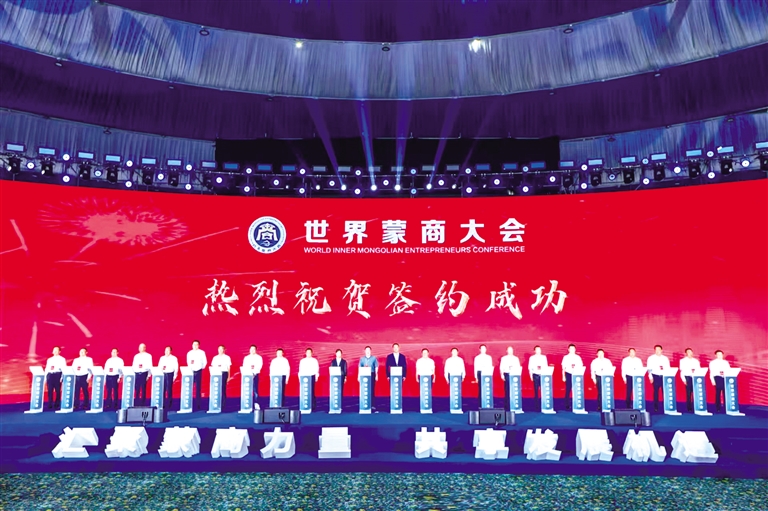 经贸合作平台能级持续跃升,为民营企业“走出去”“引进来”搭建坚实桥梁,汇聚起高质量发展的磅礴力量。早年通过组织物资交流、小型洽谈会等形式助力企业拓展市场,如今已打造出蒙商大会等一系列高端品牌活动。连续承办四届蒙商大会,引导蒙商回乡投资创业,累计签订项目332个,金额7541.1亿元;2021年成功承办“全国工商联主席高端峰会暨全国优强民营企业助推内蒙古高质量发展大会”,吸引全国各地700多位知名企业家参会,签约项目138个,金额3593.71亿元。