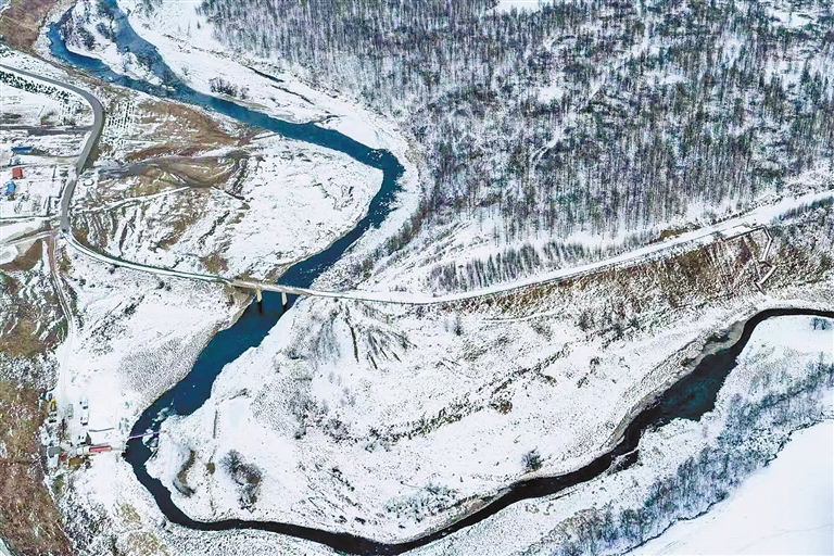 航拍镜头下,流经兴安盟阿尔山市境内的哈拉哈河在冰雪覆盖的苍茫大地间蜿蜒舒展。哈拉哈河是一条中蒙界河,这条河因穿越火山岩地貌而形成了别具一格的自然景观,四季更替间,河水呈现出不同的风貌,在银装素裹的冬季,显得格外灵秀与壮丽。本报记者 王晓博 摄