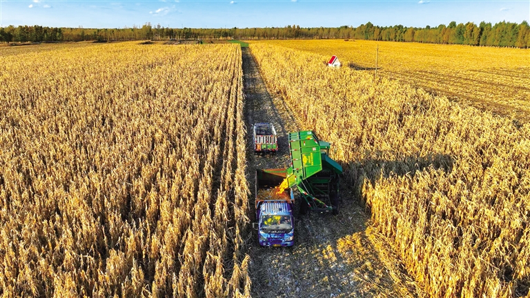 保障收购资金供应,稳住粮食安全基本盘。“十四五”以来,农发行内蒙古分行积极践行“全粮全链全行全力”发展思路,全力保障各级储备粮资金供应。特别是围绕党中央关于推动新时代东北振兴战略部署,立足内蒙古东部五盟市区位优势、资源禀赋,不断提升政策性金融服务质效,构建起覆盖“收购—储存—加工—销售”全链条的金融服务体系。“十四五”以来,农发行内蒙古分行累计投放粮油贷款855亿元。截至2025年11月,国家粮食安全板块贷款余额已达766亿元,有力支持了跨年度秋粮收购,年支持收购量稳定在千万吨级以上,收购市场份额持续保持在65%以上,切实做到了“钱等粮”,有效保护了种粮农民利益,维护了区域粮食市场稳定。