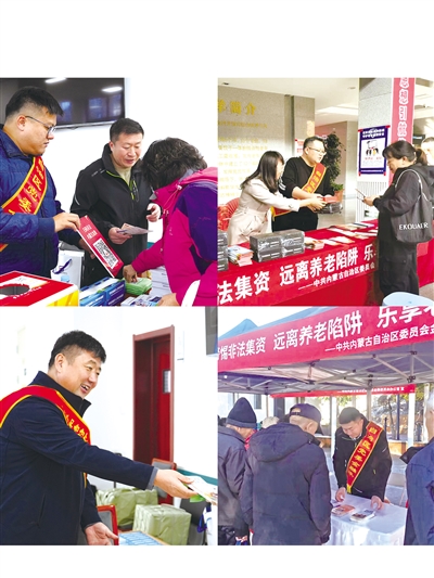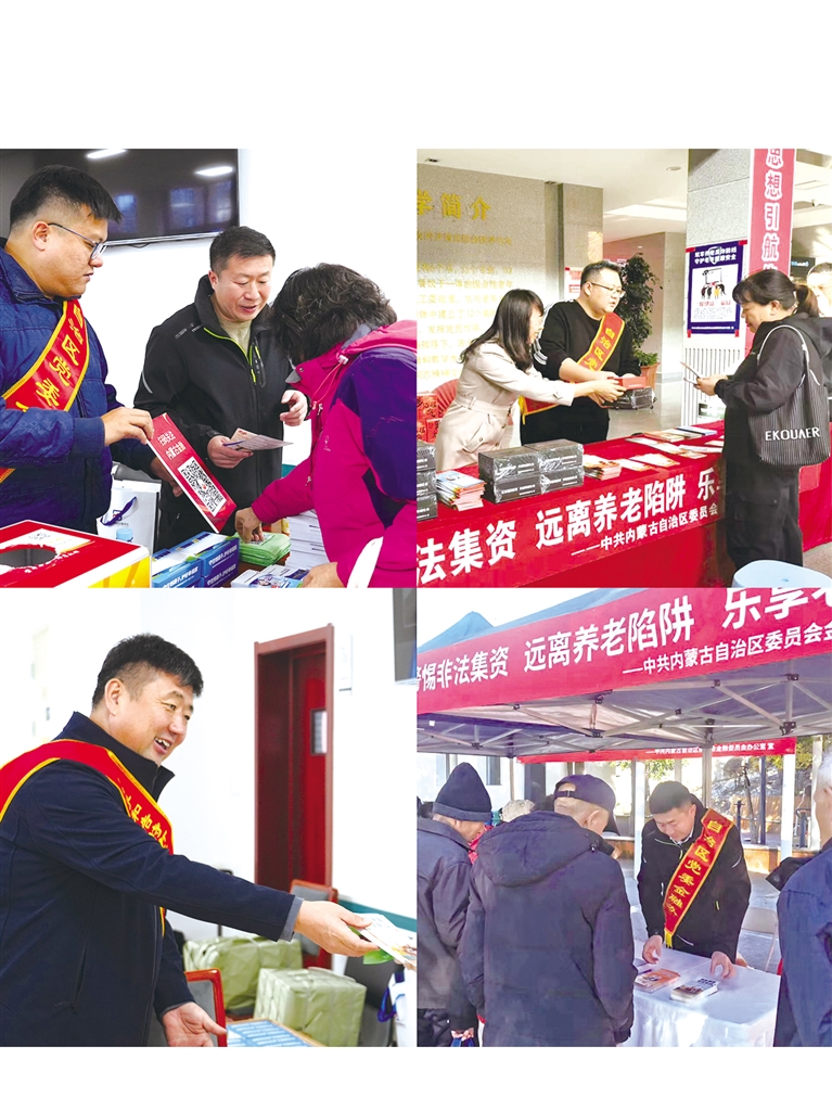 10月至11月,自治区防范和打击非法金融活动专项工作组办公室聚焦养老领域风险,联合自治区民政厅、老年大学等单位,深入全区12个盟市的31家养老机构及4个地区的街道社区,集中开展“远离非法金融,安享幸福晚年”主题宣传活动,对“收到养老金增值短信能否点击链接”“如何辨别理财产品真伪”“遇到可疑投资项目该向哪个部门举报”等问题,逐一解答,同时引导老年群体通过“官方渠道核实、拒绝个人信息泄露、留存证据及时举报”等方法规避风险。针对老年群体设计印制防范非法集资、投资理财、养老、电信诈骗、保健品等一式5张海报在老年社区、养老院张贴,切实增强老年群体的风险识别能力与自我保护意识,为老年人安享幸福晚年筑起坚实的金融安全屏障。