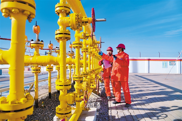 12月14日,在鄂尔多斯市乌审旗境内的苏里格气田核心生产区块,工作人员正在巡检设备。作为我国首个年产300亿立方米的整装大气田,苏里格气田承担着50多座大中城市的民生保供任务。截至目前,累计产气3600多亿立方米,惠及4亿多人口。本报记者 布音额尼尔乐 摄