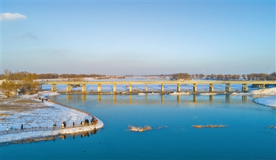 12月14日,在呼和浩特市玉泉区大黑河郊野公园内的“千岛湖”景区,银装素裹的湖岸栈道与候鸟相映成趣,构成一幅绝美的水墨画卷。市民游客络绎不绝,或沿木栈道漫步赏景,或举起相机定格美好瞬间。从昔日砂石裸露的“城市伤疤”到如今候鸟翔集的生态胜地,这片冬日胜景既是呼和浩特市大黑河流域生态治理的生动写照,也为北方冬季旅游增添了一抹清新雅致的生态亮色。本报记者 王磊 摄