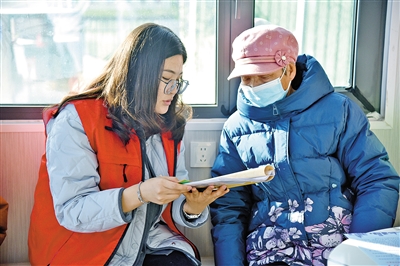 近日,在位于乌海市乌达区三道坎街道的“暖心里”服务驿站内,志愿者为居民讲解政策。今年以来,乌达区三道坎街道党工委聚焦居民需求,因地制宜打造的“暖心里”服务驿站向公众开放。驿站里不仅配备了饮水机、共享雨伞、应急药箱等,还提供政策咨询、图书阅读、饮水热饭、歇脚充电等一站式便民服务。本报记者 郝飚 摄
