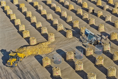初冬的兴安盟,乡间田野悄然立起一座座别致的“玉米楼”,成为黑土地上一道亮丽的“丰”景。