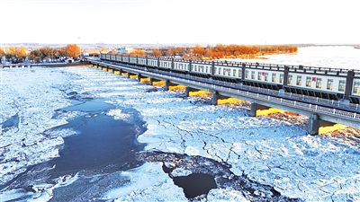 12月22日,巴彦淖尔市磴口县黄河三盛公水利枢纽大桥再现“金光穿洞”奇观,落日余晖同时照亮拦河闸18个桥洞,场面蔚为壮观,吸引众多市民游客参观打卡。本报记者 薛来 摄