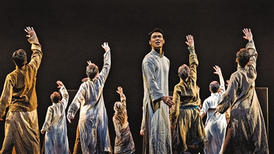 此外,舞蹈动作的编排上也体现了群像的统一性与独特性。例如,在作品开始的场景中,群舞之间动作各自不同,存在差异,后保持统一,既隐喻了不同青年个人命运的独特性,又保持了作为知识青年追求民族解放道路的统一性,展现革命历程中个体与集体的辩证关系,形成了富有张力的视觉表达。