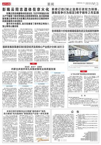 新修订的《制止滥用行政权力排除、 限制竞争行为规定》将于明年2月实施