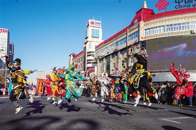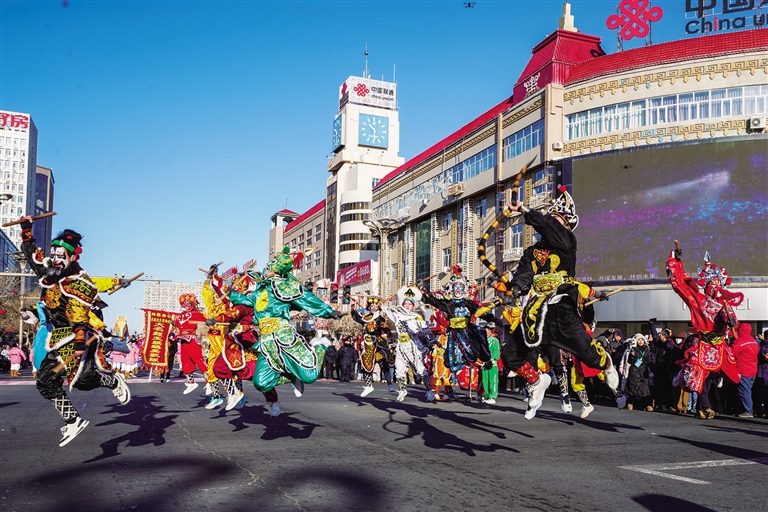 本次演出中,跨地域文化碰撞成为一大亮点。潮汕英歌舞团带来的民俗表演《潮汕英歌舞》惊艳亮相,演员们手持彩槌,动作刚劲豪迈、气势威武雄壮。作为国家级非物质文化遗产代表性项目,潮汕英歌舞在冰雪舞台上激情上演,为现场观众带来了耳目一新的视觉冲击,展现出中华文化的多元魅力。
