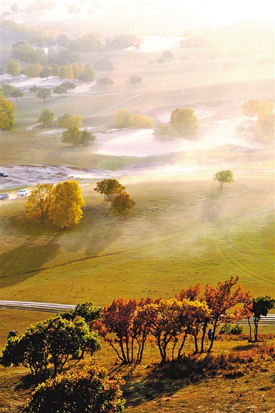 草木通灵,相人不远。元月,目光所及,白雪皑皑,枝叶萧瑟,冬的气息浓到极致,何处觅春天?不急,不躁,要细看,要用心看,大自然所传递的春的线索,早已在无尽的草原上浅浅敞开。坚冰深处,温暖的气息一点点涌动,莫尔格勒河、额尔古纳河、乌拉盖河、锡林郭勒河、额济纳河……渐渐苏醒,岸边尚未融化的残雪下,花草依旧冷着脸,但在低伏的姿势下,晶莹的霜花在大地深处悄悄消解,隐隐还有鹅黄在萌动。远远近近,一草一草,一树一树,拉起手,联起袂,正攒足了气力,只等春风一声号令,就将姗姗烟绿,点染整个山野。待个把月后,它们会一簇簇,变魔术似的,无穷无尽,喷翠吐绿。这些草木,承接了祖先的绿色基因,不仅怀揣了内蒙古大地的辽远,更有诗人般的青葱梦想,即将启程。耳畔仿佛摇响了一曲绿的情歌,咿咿呀呀,带着蒙古族长调的厚重,从呼伦贝尔、锡林郭勒、鄂尔多斯一路延展,一片片梦中的大草原,在不远的春日里,摇摇手——冬天来了,春天还会远吗?