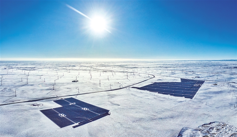 1月7日,航拍包头市达尔罕茂明安联合旗草原上的风力发电机和光伏发电设备。2025年,内蒙古新增新能源装机3500万千瓦,新能源总装机达到1.7亿千瓦以上,其中,风电装机在全国率先突破1亿千瓦。新能源发电量2700亿度,发电量连续10余年位居全国第一,外送绿电900亿度、同比增长40%以上。本报记者  孟和朝鲁  摄