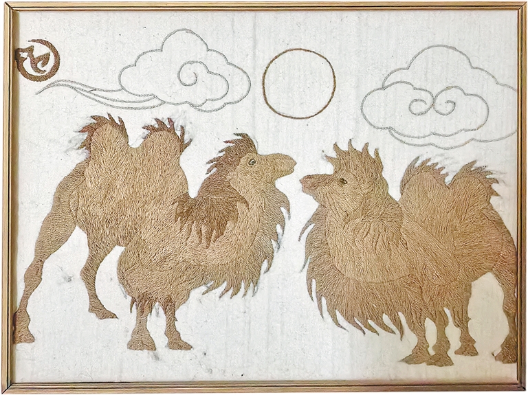 2017年,乌兰图雅成立了腾尔利民族文化传媒有限责任公司,通过不断地创新探索,她以传统图案为“底色”,将驼绒线融入新色彩,让毡绣作品更加耀眼,各式各样的毡绣作品应运而生。