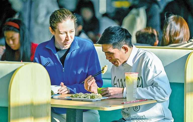 岁末年初,内蒙古师范大学的食堂里暖意融融、香气扑鼻。来自老挝的科学技术史专业博士生孟丹和好朋友一起津津有味地品尝着热气腾腾的饺子。