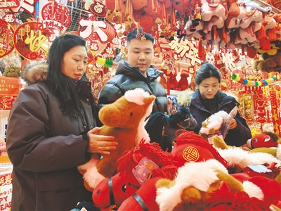 1月18日,呼和浩特市民在商场里选购马年饰品。随着春节的临近,首府商场已率先奏响“年味序曲”,各大商超纷纷开辟新春饰品专区,红彤彤的春联、福字与形态各异的马年主题饰品琳琅满目,传统韵味与潮流创意碰撞融合,不仅吸引市民提前选购,更点燃了马年新春消费市场的第一波热潮。本报记者 王磊 摄