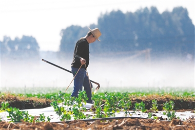 1月20日,在云南省曲靖市陆良县芳华镇双合村,农民为小春马铃薯覆盖地膜。1月20日是“大寒”节气。 新华社发