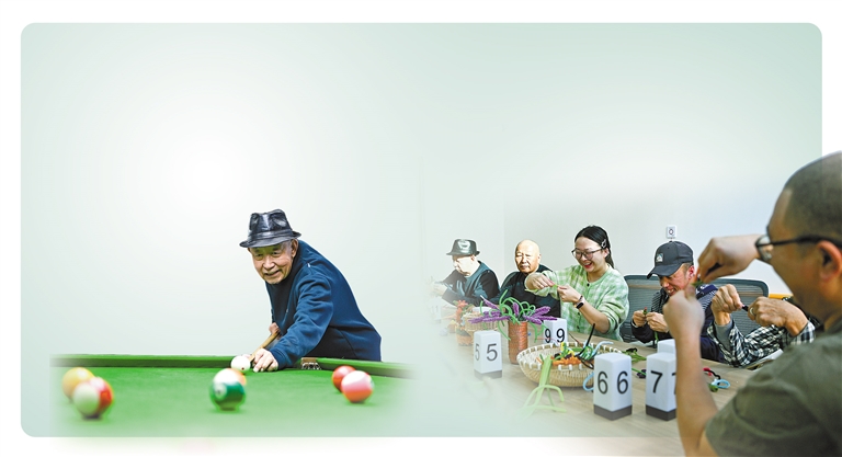 1月19日,通辽市科左后旗养老院运动馆内,几位老人正在进行台球比赛,“选手”聚精会神,“观众”鼓掌叫好,一副其乐融融的样子。