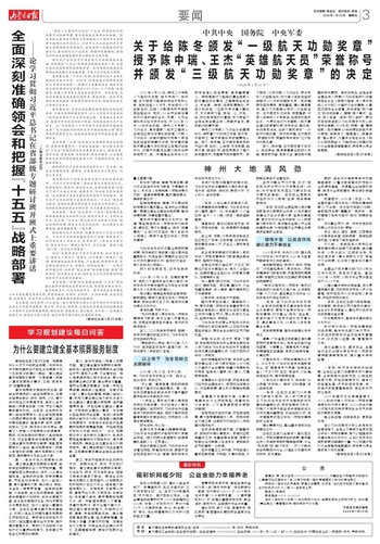 关于给陈冬颁发“一级航天功勋奖章” 授予陈中瑞、王杰“英雄航天员”荣誉称号 并颁发“三级航天功勋奖章”的决定