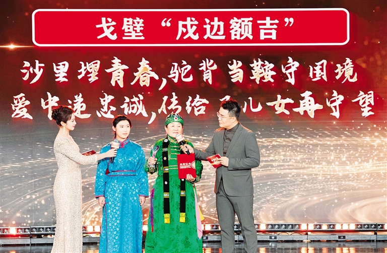 1月28日,由新华社主办的“中国网事·感动2025”公益盛典暨年度颁奖典礼在北京举行,活动揭晓“中国网事·感动2025”十大年度网络人物。这是“戈壁‘戍边额吉’”敖云其木格(右二)出席颁奖典礼。 新华社记者 李安 摄