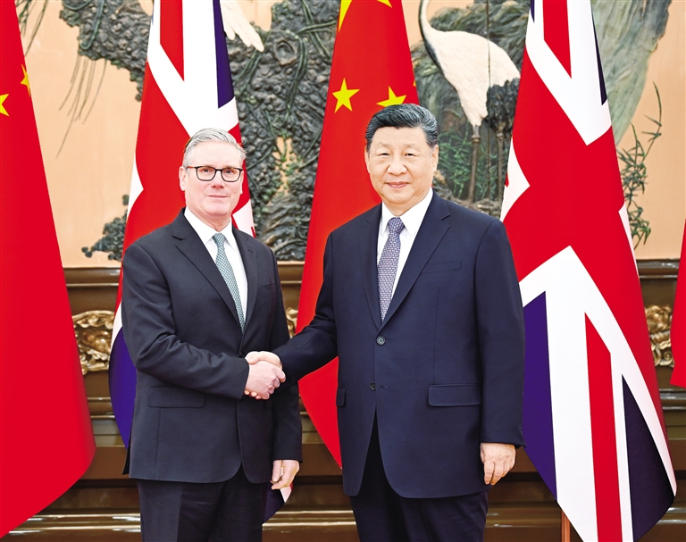 习近平强调,互信是国与国关系行稳致远的基础。中国始终坚持走和平发展道路,从未主动挑起过一场战争,从未侵占过别国一寸土地,中国无论怎样发展壮大都不会对其他国家构成威胁。中国的文化传统是“以和为贵”,追求的是“和而不同”。中英经贸合作的本质是互利共赢。今年是中国“十五五”开局之年,双方要拓展教育、医疗、金融、服务业互利合作,开展人工智能、生物科学、新能源和低碳技术等领域联合研究和产业转化,实现共同发展繁荣。希望英方为中国企业提供公平、公正、非歧视的营商环境。中英都是文化大国,都为人类发展进步作出重要贡献。双方要密切人文交流,进一步便利人员往来。欢迎英国政府、议会、地方各界多来中国参访,增加对中国全面、客观、正确的认知。中方愿积极考虑对英实施单方面免签。