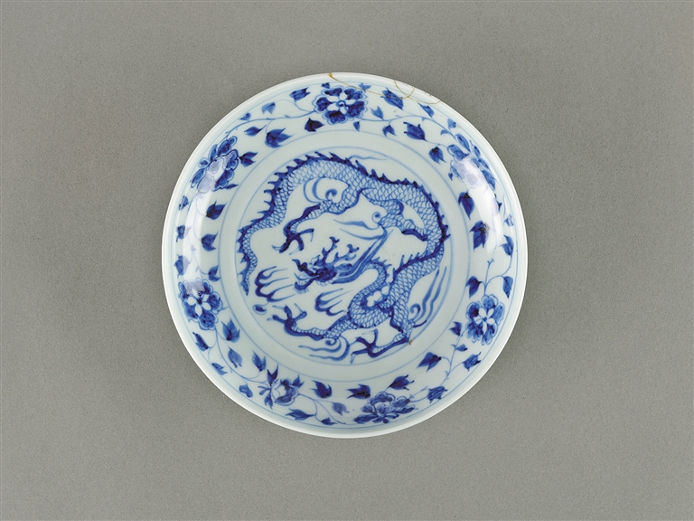 端详这只瓷盘,无论是盘心的龙纹,还是盘边缘的花卉纹,都繁缛精美、杂而有序、满而不乱。