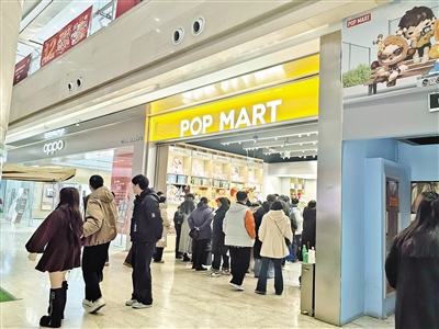 1月22日晚,华灯初上,记者走进呼和浩特市摩尔城泡泡玛特潮玩店,只见面积不大的店铺内人头攒动,众多消费者正兴致勃勃地选购各式盲盒产品。
