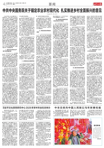 中共中央国务院关于锚定农业农村现代化 扎实推进乡村全面振兴的意见