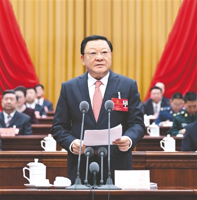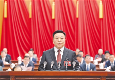 2月4日上午,自治区人民政府主席包钢向大会作政府工作报告。本报记者 韩卿立 摄