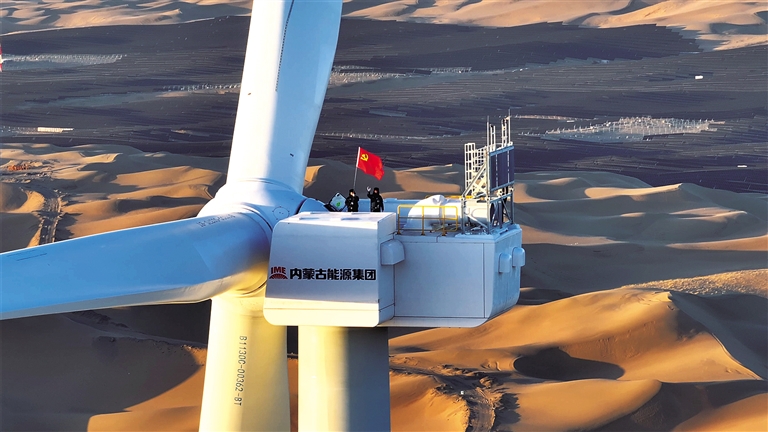 看“蒙能效率”。2024年,2000多万千瓦新能源项目接棒投产,项目总占地范围850余万亩,这是集团公司发展史上一次性投资最大、数量最多、分布最广的新能源项目。其中,风电项目率先在国内批量化使用陆上最大风机机型10兆瓦风机,光伏项目选用575瓦及以上N型双玻大功率、高效能组件。全部投产运营后,年发绿电达500多亿千瓦时,节约标准煤1500余万吨,减排二氧化碳近4000万吨,相当于种植22亿棵树。成功打造“风电光伏一体化”产业格局,以及基于防沙治沙、采煤沉陷区治理的解决方案,构建了全方位、多元化、规模化和产业化的新能源发展“新界面”。