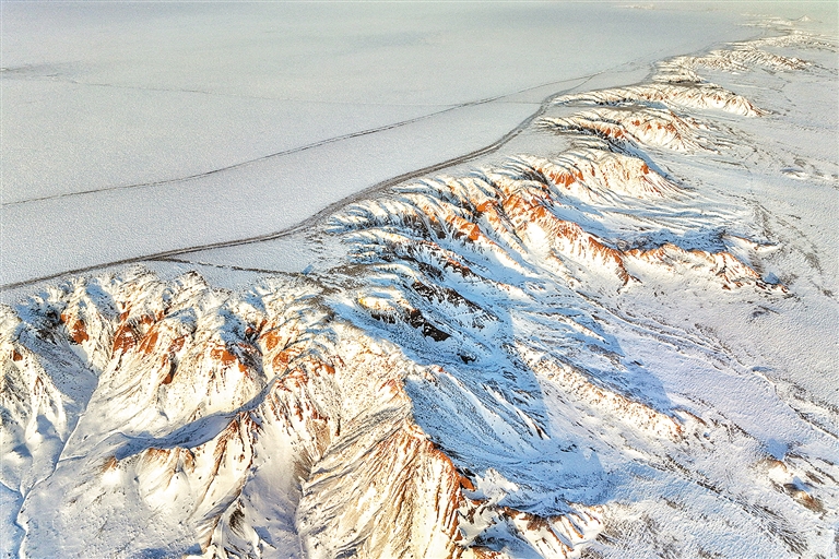 冬日里,红崖台地独特的丹霞地貌与皑皑白雪交相辉映,勾勒出一幅壮美自然画卷。红崖台地位于乌兰察布市四子王旗北部,当地人称其为“大红山”,是四子王国家地质公园的重要组成部分,山体呈红色,随季节变化颜色深浅交替,为典型的丹霞地貌。 布赫 摄