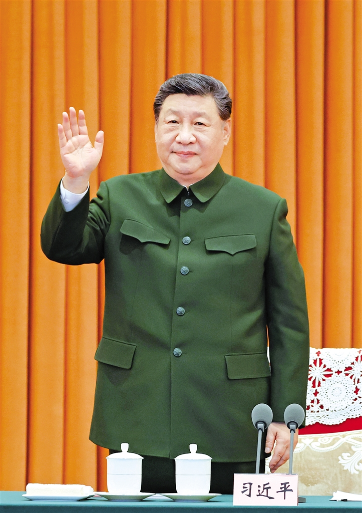 下午4时许,习近平来到八一大楼,同来自各军兵种和武警部队的9个单位视频通话。陆军某旅2营、海军安徽舰、空军航空兵某旅、火箭军某旅、军事航天部队某部、网络空间部队某部、信息支援部队某中心、联勤保障部队某仓库、武警部队某支队,依次向习主席报告战备值班和执行任务情况。习近平认真听取汇报,同他们亲切交流。看到官兵精神饱满、士气高昂,在各自岗位上扎实练兵备战,习近平给予充分肯定,勉励大家狠抓实战化练兵,用好手中武器装备,提高部队战斗力建设和运用水平。