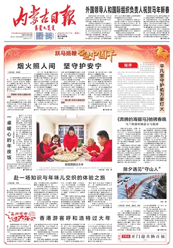 家国为先,坚守是保家卫国不变的赤诚。春节期间,内蒙古漫长的边境线上依然严寒刺骨,边防战士们坚守在巡逻一线,把对家人的思念藏在心底,把对家国的忠诚落实在行动上。守卫好边境安宁,就是守护好万家团圆,这是他们对责任的诠释,更是内蒙古儿女家国情怀的生动写照。