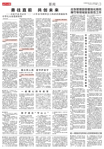 除夕视频调度会对切实做好烟花爆竹等领域安全防范工作进行再动员再部署。会议听取各地安全防范工作情况汇报,指出烟花爆竹运输、销售、存储、燃放进入高峰期,安全风险高,每一个环节,每一个点位都不能有丝毫松懈,要认真吸取教训、引以为戒,坚决杜绝任何麻痹思想、侥幸心理,时刻绷紧安全生产这根弦,多下未雨绸缪、防微杜渐之功,坚决守住安全底线。