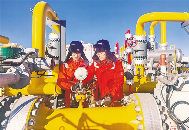 2月17日,国家管网集团北京管道公司内蒙古输油气分公司乌兰察布作业区工作人员正在查看设备运行情况。春节期间,他们坚守在能源输送的岗位上,用责任与担当守护着千家万户的“温暖底气”,为内蒙古春节期间的供气安全筑起了一道坚固的防线。本报记者 王磊 摄