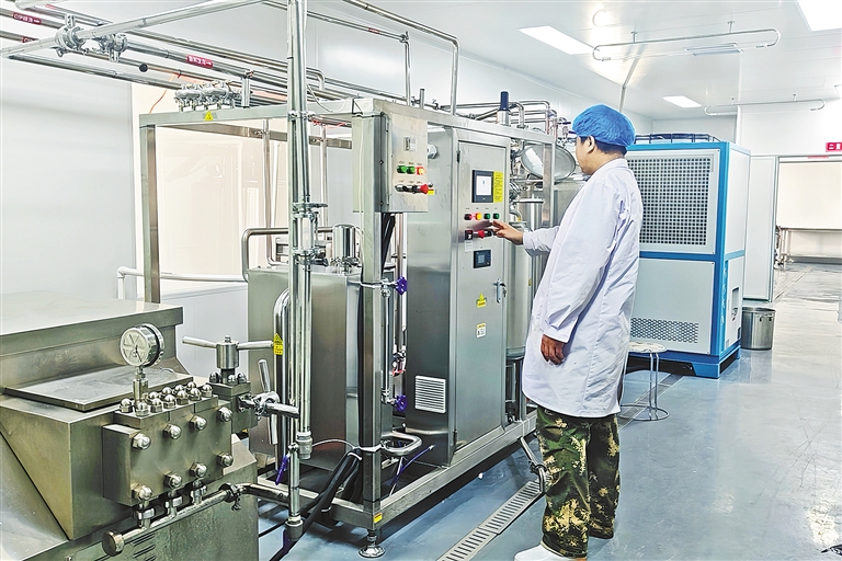 从家庭作坊到标准化生产,那木吉拉跨过了技艺转化的第一道坎。他多次外出考察学习现代食品加工技术,引进专业检测与温控设备,建成300平方米标准化生产车间,将传统酿制技艺与现代品控结合,确保每一瓶酸马奶风味醇、品质稳定。2025年,基地成功拿下SC食品生产许可证,实现合规化、标准化生产,让非遗技艺有了现代产业“身份证”。