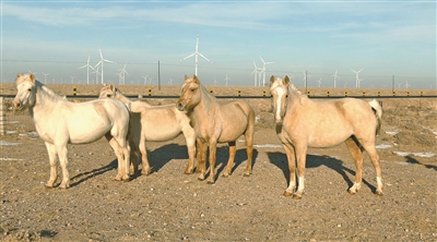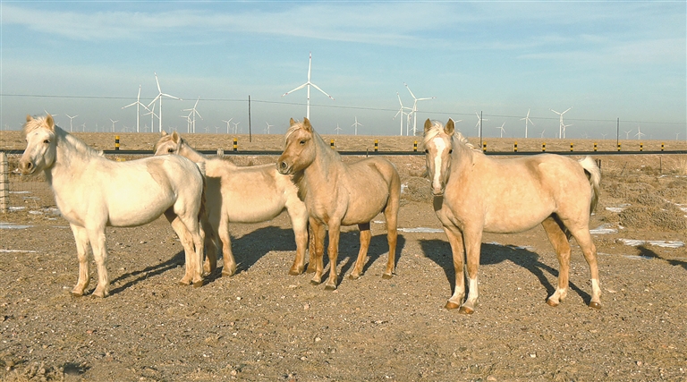 一匹匹毛色光亮的黄骠马悠闲踱步。