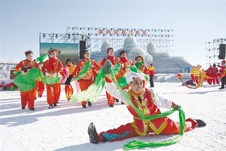 2月19日,呼和浩特市大黑河军事文化乐园热闹非凡,民俗表演、非遗展示等活动轮番上演。春节假期,呼和浩特市依托区位优势,打造“冰雪+文化+旅游”特色品牌,推出多项精彩纷呈的文化活动,让市民、游客感受传统年俗,乐享美好生活。本报记者 白雪 摄