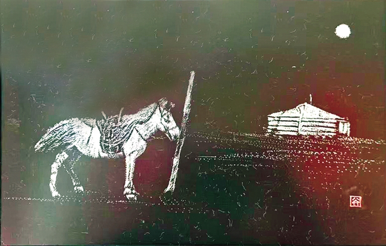 目光炯炯,鬃毛仿佛随风轻扬……当谷氏版画雕刻技法巴彦淖尔市级非遗代表性项目传承人谷宝山的刻刀划过铝塑板时,细腻婉转的纹路下,一匹俊逸的马匹轮廓渐次清晰,苍劲有力。