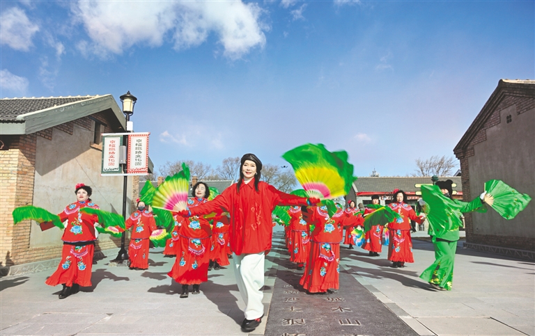 2月22日,欢快的秧歌表演为新春增添了喜庆氛围。当日,呼和浩特市赛罕区民间社会大联欢活动启动仪式在京绥铁路文化园启幕。群众在欣赏传统民俗的同时,重温了全国重点文物保护单位白塔火车站的百年历史。本报记者 牟野 摄
