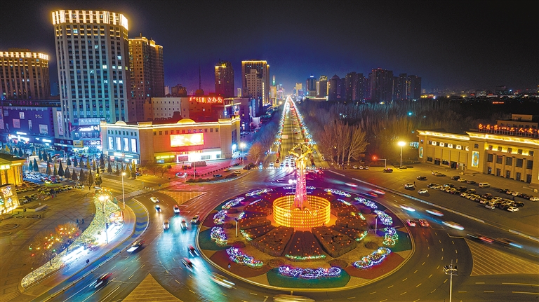 新春佳节,包头市的街头年味儿正浓。华灯初上,一宫环岛被五颜六色的彩灯装扮一新,钢铁大街两侧红灯笼整齐高挂,光影交错、色彩缤纷。喜庆的新春元素遍布街巷,浓浓的节日氛围扑面而来。 李强 摄