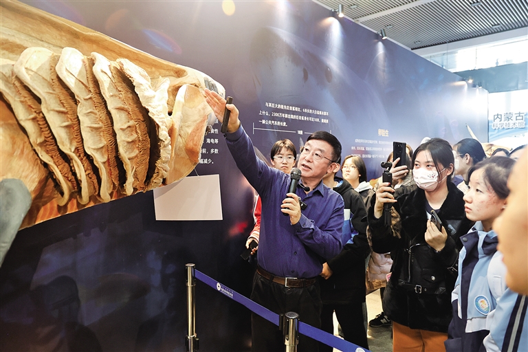 2月27日,大连医科大学解剖学教授、“生命奥秘博物馆”创始人隋鸿锦为中小学生进行现场科普讲解,深入探索海洋生物的奥秘。当日,内蒙古科技馆举办《开学第一课:听科学家讲述生命背后的故事》活动,将专业的科学知识与趣味的展示形式相结合,既丰富了青少年的寒假生活与开学体验,也为提升青少年科学素养、培养科学探索精神搭建了优质平台。本报记者 贾奕村 摄