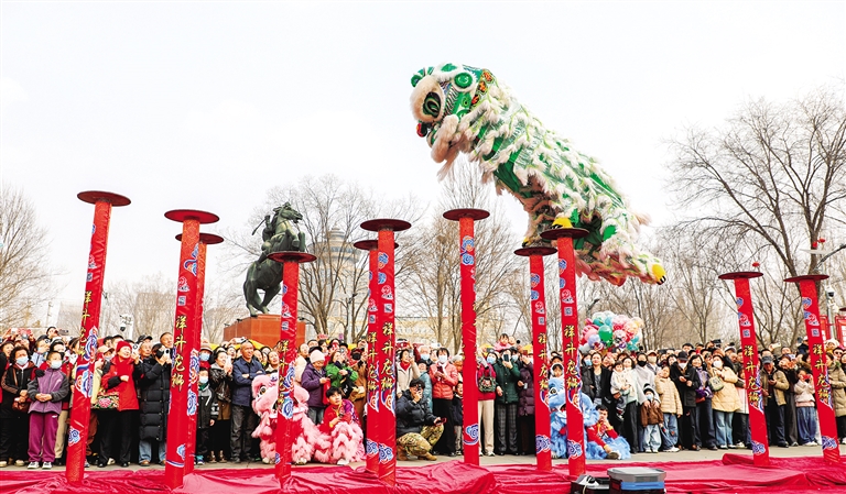 3月1日,市民游客在参加体育庙会。3月1日,全民健身大拜年·内蒙古体育庙会在内蒙古赛马场景区举行,通过新春运动游园会、特色民俗社火展演等丰富多彩的元宵节活动,探索出“体育+节庆+文旅+消费”的融合发展新路径。本报记者 孟和朝鲁 摄