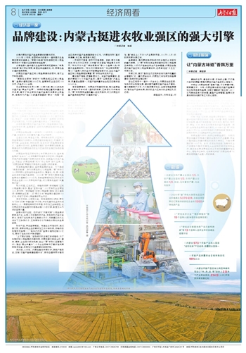打响“绿品”区域牌,向品牌化要竞争力。今年将重点培育内蒙古牛羊肉、奶酪、马铃薯、果蔬、杂粮等区域品牌,重点打造有影响力的牛羊肉、雪花粉、葵花籽、粳稻、小米、鲜食玉米等绿色农畜产品品牌。同时,全面推进品牌标准化建设,计划新认证“蒙”字标企业30家以上,让优质绿色的“内蒙古味道”拥有统一的身份标识,以过硬品质树立市场口碑。