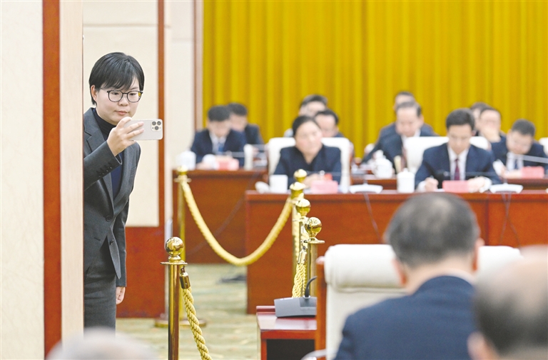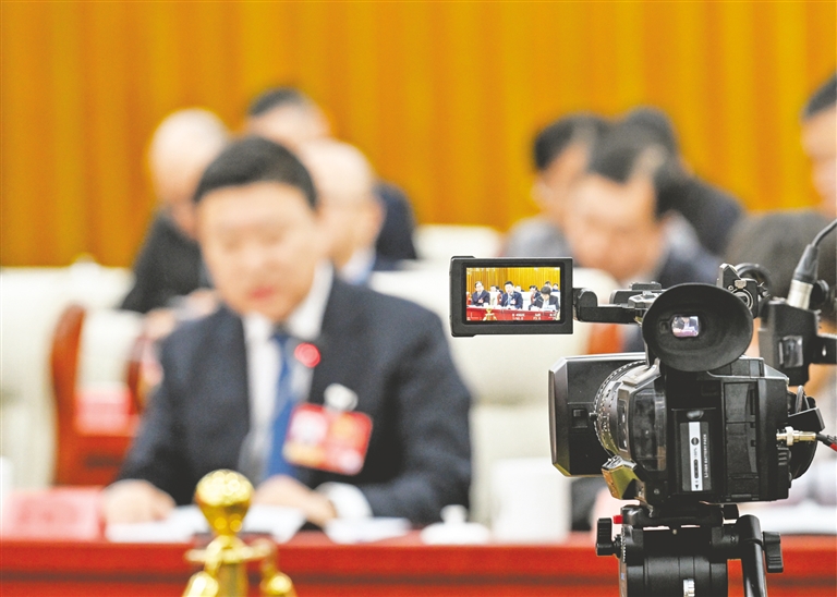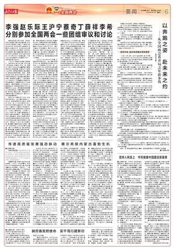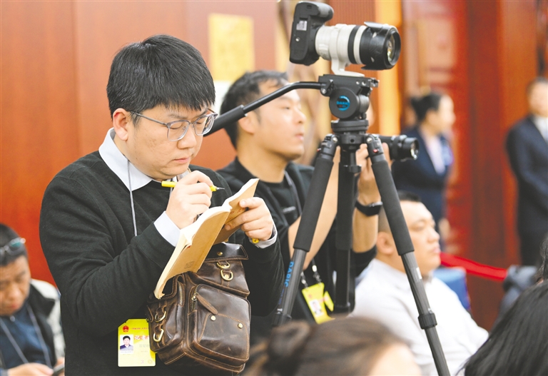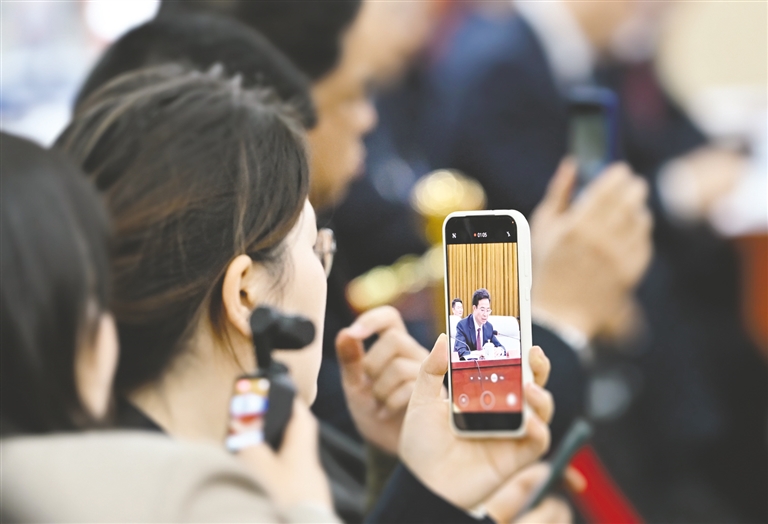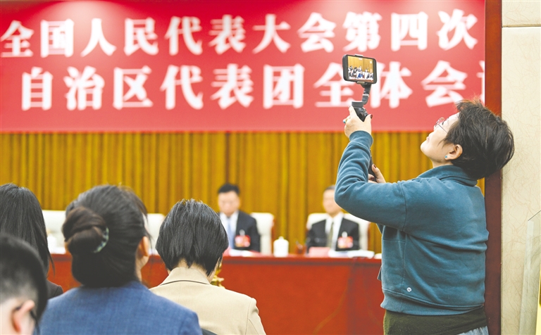 3月6日下午,十四届全国人大四次会议内蒙古代表团在驻地举行全团会议,本次全团会议向参加全国两会报道的境内外媒体开放,蓬勃发展的内蒙古吸引了众多媒体记者前来采访。聚焦全面贯彻习近平总书记对内蒙古系列重要讲话重要指示精神,代表们以铸牢中华民族共同体意识为主线,紧紧围绕落实自治区党委“1571”工作部署,谈感受、谋突破,充分展现了全区上下推动高质量发展、加快闯新路的信心决心,生动讲述了内蒙古勇毅前行、开拓进取的奋进故事。