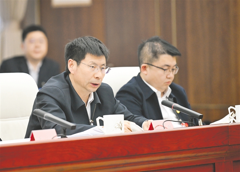 3月9日,全国人大代表及永乾(左)建议,支持呼伦贝尔市全域陆港基础设施和满洲里产业协作园区建设。 本报记者 孟和朝鲁 摄
