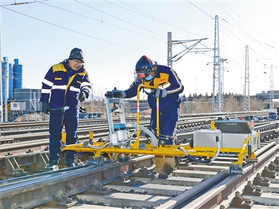 大板综合维修段加强线路巡检,确保春运期间铁路设备安全稳定运行,保障列车行驶安全。