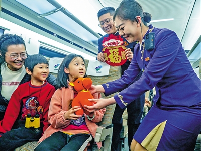 包头客运段高铁车队为给旅客提供更美好的出行体验,各乘务组配备儿童读物、益智玩具、便民服务袋等,通过精细化的服务举措全力护航旅客温馨有序出行。