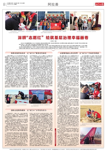 年初以来,阿拉善盟聚焦群众“家门口”的急难愁盼,精准对接志愿服务供需、不断创新志愿服务载体,将志愿服务深度融入基层治理各环节,有效提升了群众的获得感、幸福感与安全感,以一抹抹“志愿红”绘就共建共治共享的基层治理“同心圆”画卷。