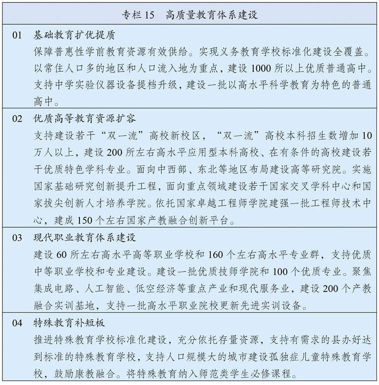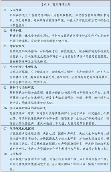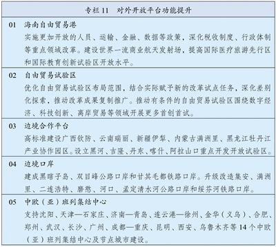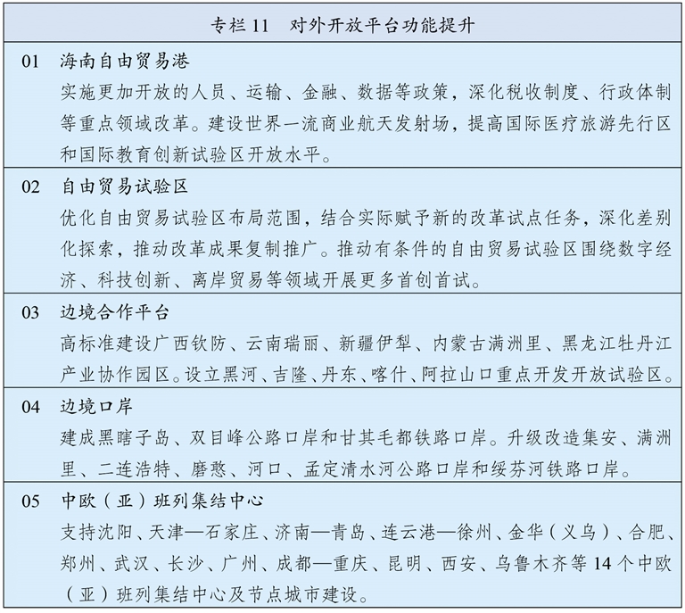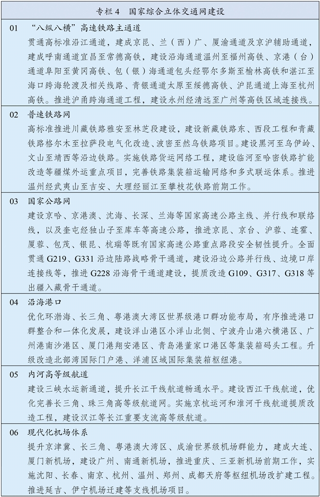 加强港澳与内地经贸、科技、人文等合作,完善便利港澳居民在内地发展和生活政策措施。有序推进与内地金融市场互联互通,深化与内地产学研创新协同。深化粤港澳合作,持续推动重点领域合作实现突破,促进港口、机场和轨道交通协同发展,建设广州至珠海(澳门)高铁,推进港深西部铁路前期工作。深化琴澳一体化发展,高质量建设前海、南沙、河套等重大合作平台。建设澳门国际机场横琴前置货站,推进澳琴国际教育(大学)城建设,支持澳门高校在横琴延伸办学。健全香港、澳门在国家对外开放中更好发挥作用机制,支持港澳深度参与高质量共建“一带一路”,发挥专业服务优势协助企业“走出去”。发挥港澳在中西文明交流互鉴中的重要窗口作用。